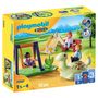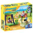 Bienvenue dans l'aire de jeux PLAYMOBIL 1.2.3. Ici, les petits aventuriers peuvent venir se défouler. Vous trouverez une balançoire, un toboggan ou bien encore un dinosaure à bascule. Tout le monde pourra y trouver son bonheur. Pendant ce temps, la maman peut se reposer sur le banc en observant les