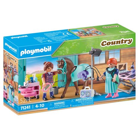 - Contient 2 personnages (un vétérinaire et une cavalière), un cheval et des accessoires de soin pour les chevaux.
