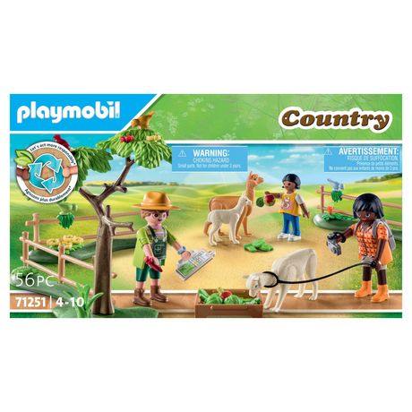 Qui a dit que les alpagas ne se plaisent qu'en Amérique latine ? Leur laine douce et chaude leur permet de supporter les hivers sur le vieux continent, même dans les régions les plus reculées d'Europe. Grâce à cet enclos à alpagas, profitez du dynamisme de cet animal curieux au cours d'une promenade. Le fermier Playmobil est très habile dans le maniement du licol, pour guider ses bêtes sous les yeux amusés des visiteurs. L'enclos est fourni avec de nombreux accessoires.