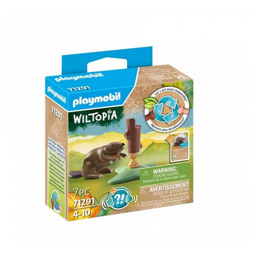 Contient un castor et une souche d'arbre Le castor possède une queue mobile pour pouvoir se redresser légèrement -La souche de l'arbre dispose de deux parties qui peuvent se désolidariser - L'élément de décor permet de simuler un arbre rongé par le castor. 7 pièces.