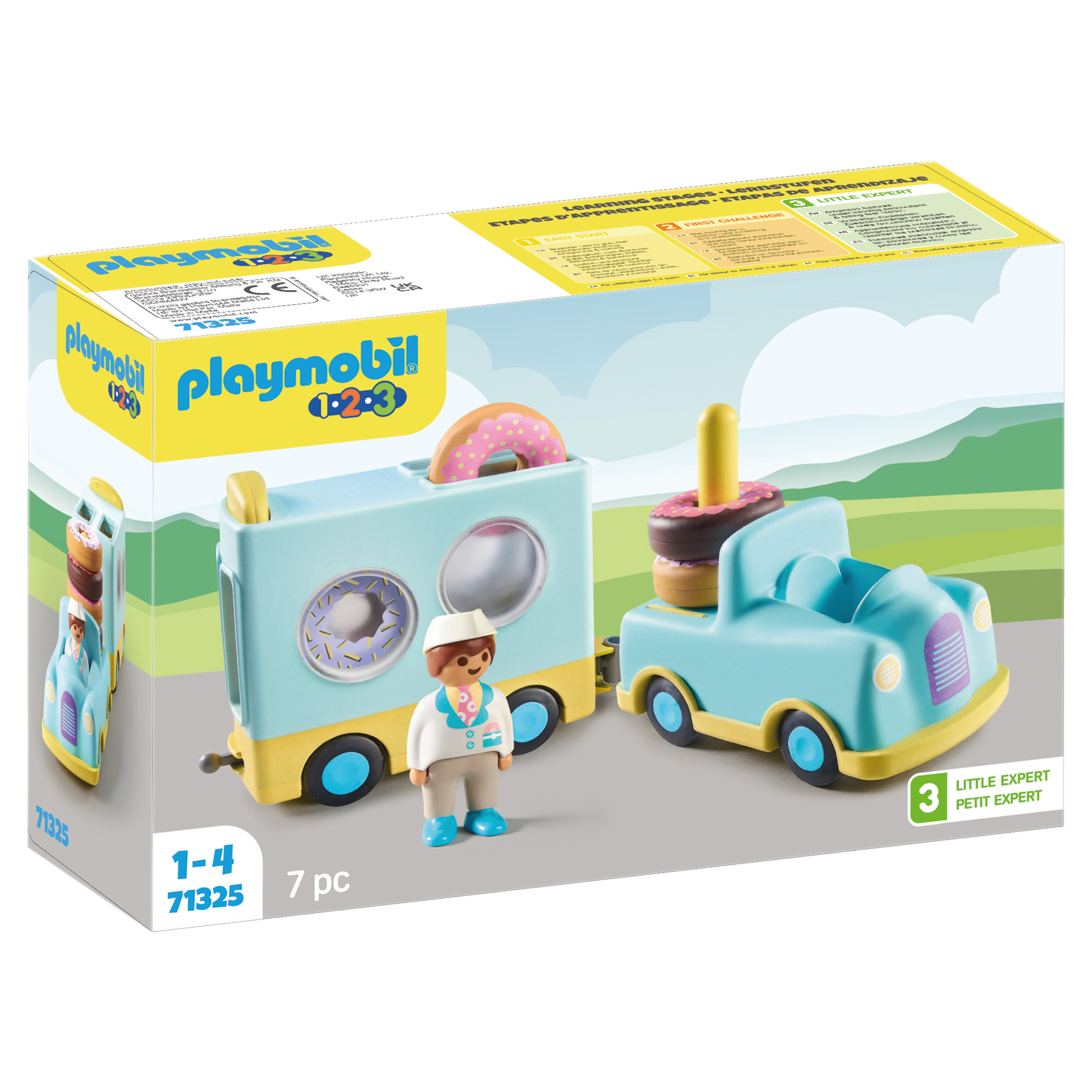 Le camion de donuts avec fonctions de tri et d'empilement offre de nombreuses opportunités de jeu pour les jeunes enfants : Ils peuvent ranger de jolis donuts dans la remorque, qui rouleront ensuite à travers la pièce dès que la porte sera ouverte. Aller à leur poursuite est très amusant ! De plus, le bâton permettant d'empiler les donuts à l'arrière du camion entraine la motricité fine. Contient 1 personnage et 4 donuts qui peuvent être empilés ou insérés dans les deux fentes sur le toit.
