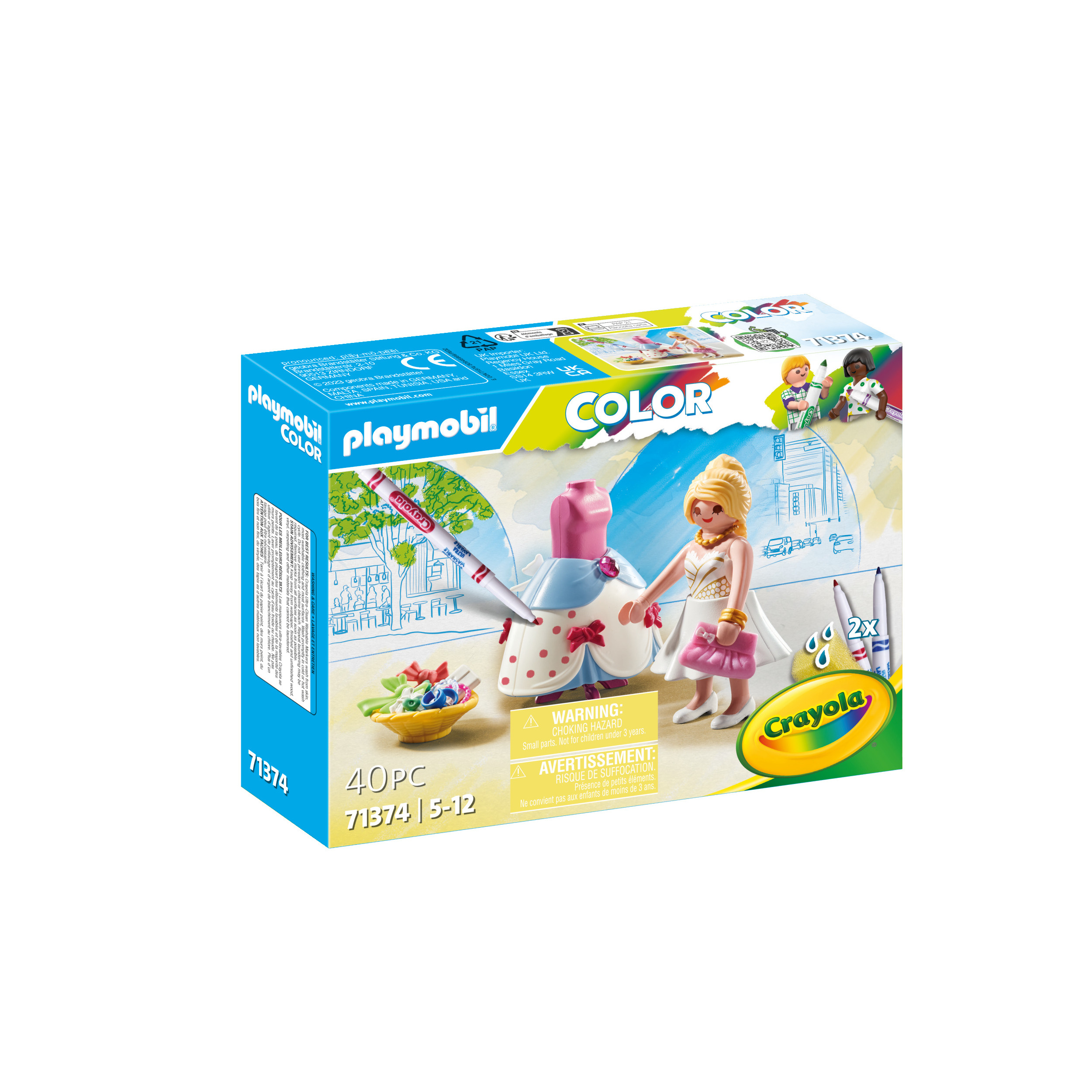 Ils sont de retour ! Après 45 ans, la collection PLAYMOBIL Color fait son grand retour ! En collaboration avec CRAYOLA, cinq nouveaux coffrets comprennent de nombreux accessoires blancs qui peuvent être coloriés de manière unique. Ils peuvent ensuite être facilement lavés et coloriés à nouveau. Un ruban derrière, et si je rajoutais un peu de rose ? Vous avez toujours rêvé de créer votre propre robe de soirée ? Ce coffret est fait pour vous ! Les deux jupes interchangeables sont personnalisables, tout comme le haut et les chaussures du personnage. De nombreux accessoires peuvent être ajoutés sur l'une des jupes pour la rendre unique. Le coffret comprend un personnage, deux jupes, deux feutres CRAYOLA et de nombreux accessoires. Tous les feutres CRAYOLA inclus sont lavables et non toxiques. Créé de nouvelles histoires Playmobil Color avec tes couleurs.