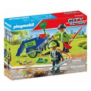 Plus aucune feuille ne trainera sur la route ! Les agents d'entretien prennent leur mission très au sérieux. Ils sillonnent la ville avec tout le matériel nécessaire pour la nettoyer de ses feuilles. D'abord le souffleur permet de les enlever de la route, puis le râteau de les regrouper. Il ne reste plus qu'à les récupérer pour les mettre dans la poubelle, et le tour est joué !. Le coffret comprend deux personnages, un souffleur de feuilles, une poubelle transportable, un râteau et d'autres accessoires.