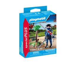 Le set PLAYMOBIL Spécial Plus, Ninja, invite à pénétrer dans le monde palpitant des arts martiaux. Grâce à différentes armes, il est possible de reconstituer des exercices de combat réalistes. Les protections et de l'?illet de sa ceinture peuvent être enlevés du personnage