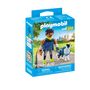 Personnage : 1 homme Animaux : 1 border collie Accessoires : 1 friandise, 1 laisse avec harnais pour chien.