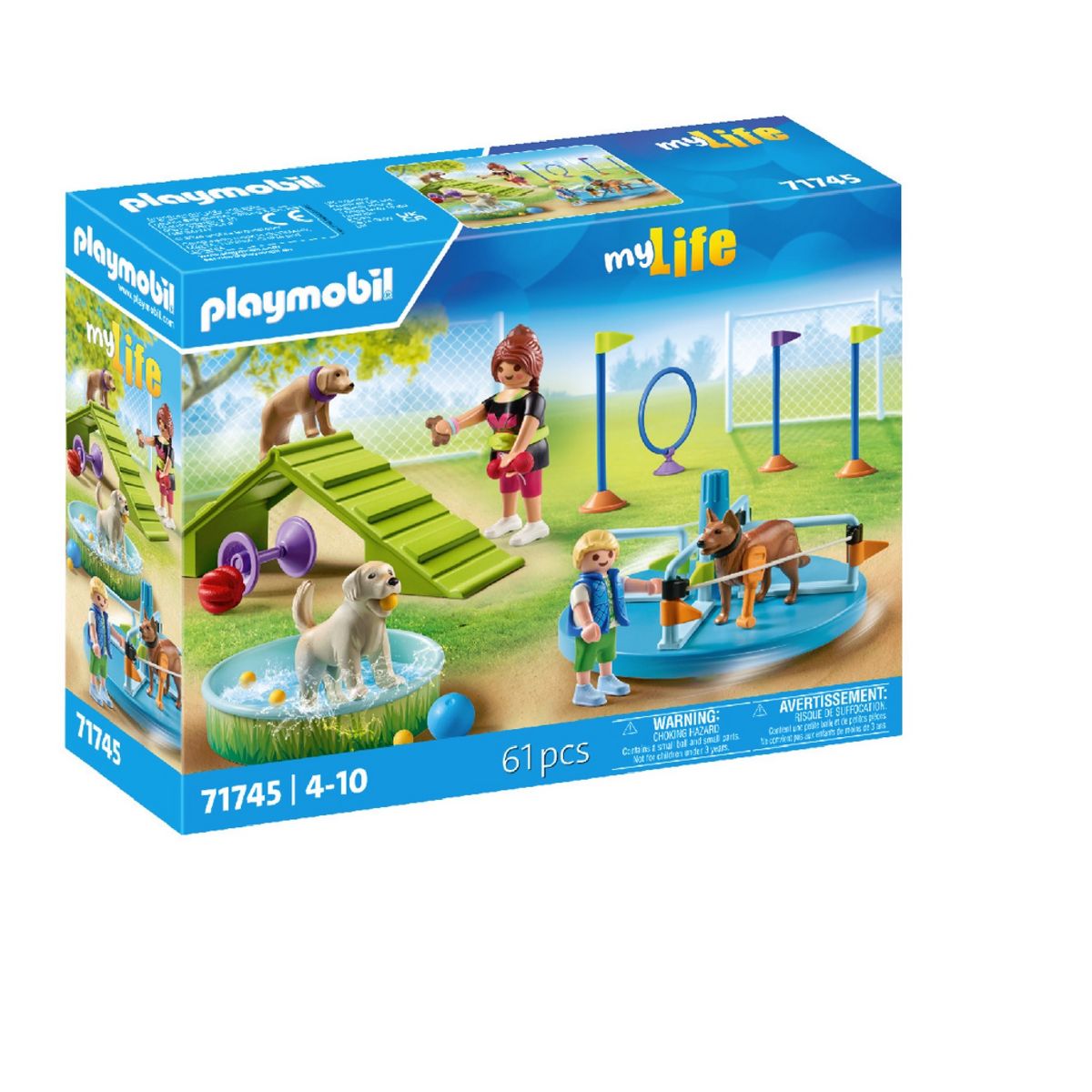 Comprend deux personnages, un terrain de jeux pour chiens et des accessoires