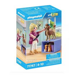 La toiletteuse canine stylise la caniche avec des outils de toilettage, rangés dans un panier. Comprend un personnage, des décorations pour le pelage et des ensembles de pelage interchangeables. Transformez l'heure du toilettage en moment de jeu avec le set de toilettage pour chien PLAYMOBIL ! Coiff