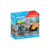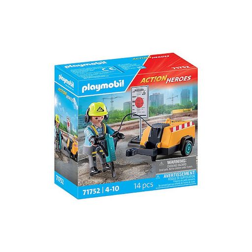 Découvrez notre marteau-piqueur, l'outil parfait pour vos projets de construction et de démolition ! Comprend un personnage, un marteau-piqueur et des accessoires. Il est temps de faire le travail avec l'ouvrier de construction PLAYMOBIL et son marteau-piqueur ! Le puissant marteau-piqueur se connecte au compresseur à l'aide d'un tuyau en silicone réaliste, tandis que l'attelage de remorque permet de le transporter facilement jusqu'au prochain chantier. L'ouvrier, équipé de gants et d'un casque amovible, est prêt à s'attaquer à n'importe quelle tâche. Ajoutez le panneau de chantier pour délimiter la zone de travail et assurer la sécurité.
