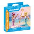 Attention, petits explorateurs sous-marins et rêveurs aquatiques ! Préparez-vous à plonger dans un monde de magie et d'aventures avec le set 'Sirène et Triton avec sceptre et trident' de Playmobil (référence 71799) ! C'est le complément parfait pour des histoires féériques au fond des océans. Imaginez un peu : deux figurines Playmobil articulées, une magnifique sirène aux cheveux longs et colorés, et un puissant triton avec sa queue de poisson scintillante ! Ils sont accompagnés de leurs accessoires emblématiques : un sceptre magique pour la sirène et un trident majestueux pour le triton, prêts à régner sur les fonds marins