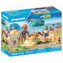 Quelle belle journée d'été ! Le sable sous les pieds est chaud, le petit garçon a construit un grand château de sable avec sa pelle et son seau. Maintenant, il est en train d'ensevelir sa maman, seule sa tete dépasse du sable ! Pour elever tout le sable, le petit garçon peut enfiler sa bouée et sa maman son masque, son tuba et ses palmes pour aller se baigner dans la mer.
