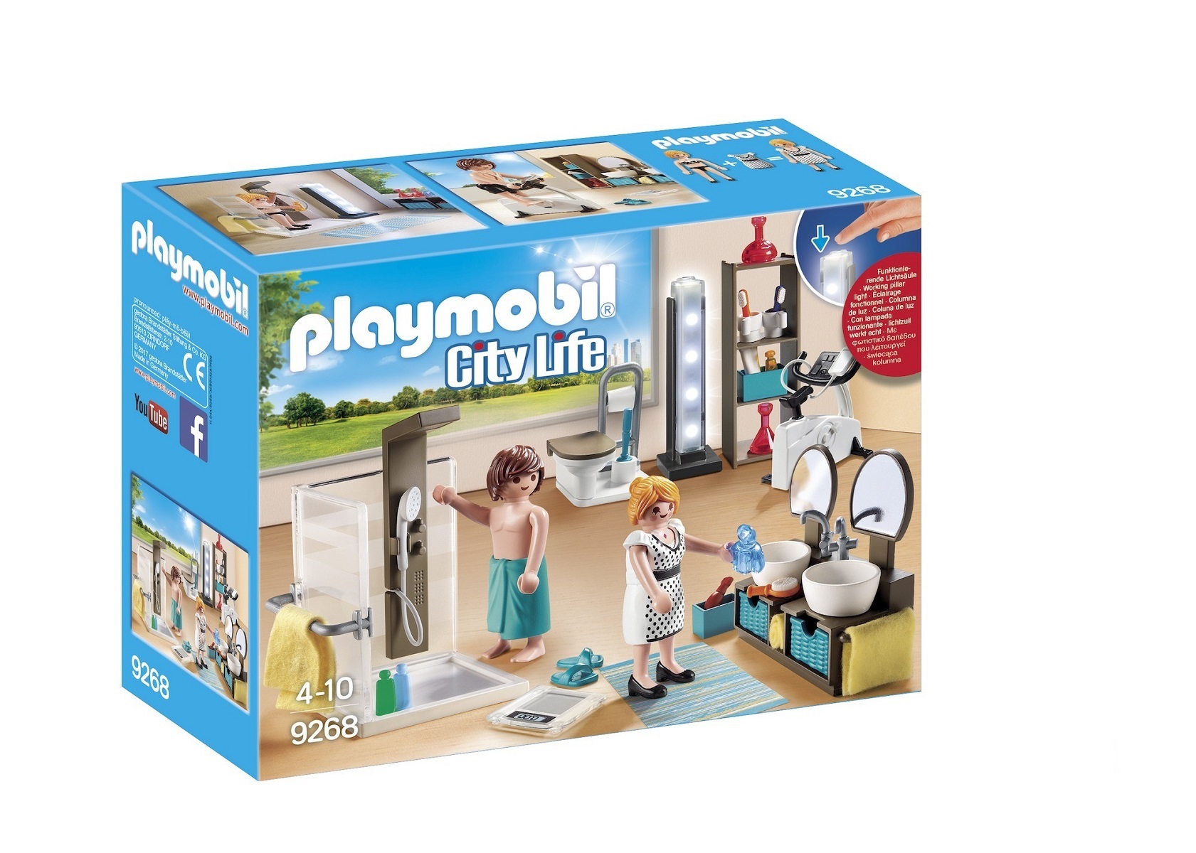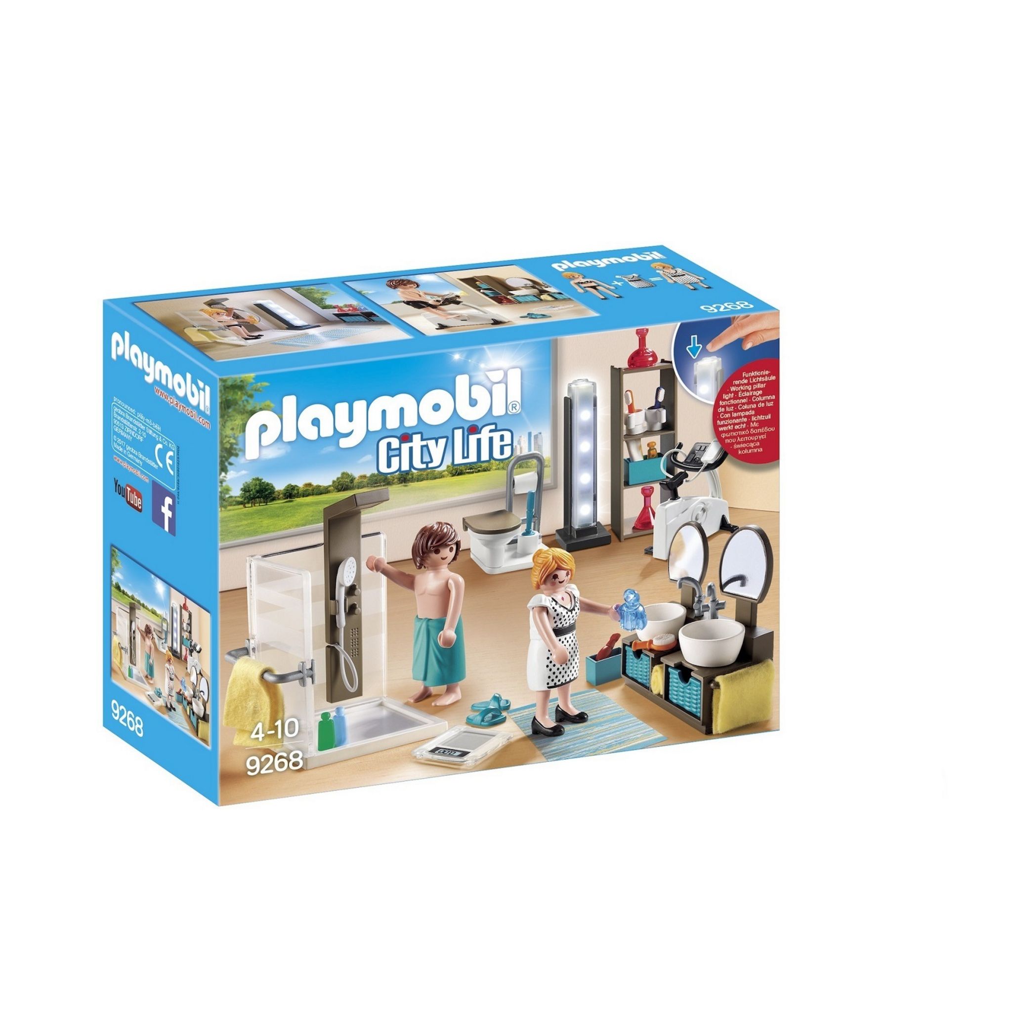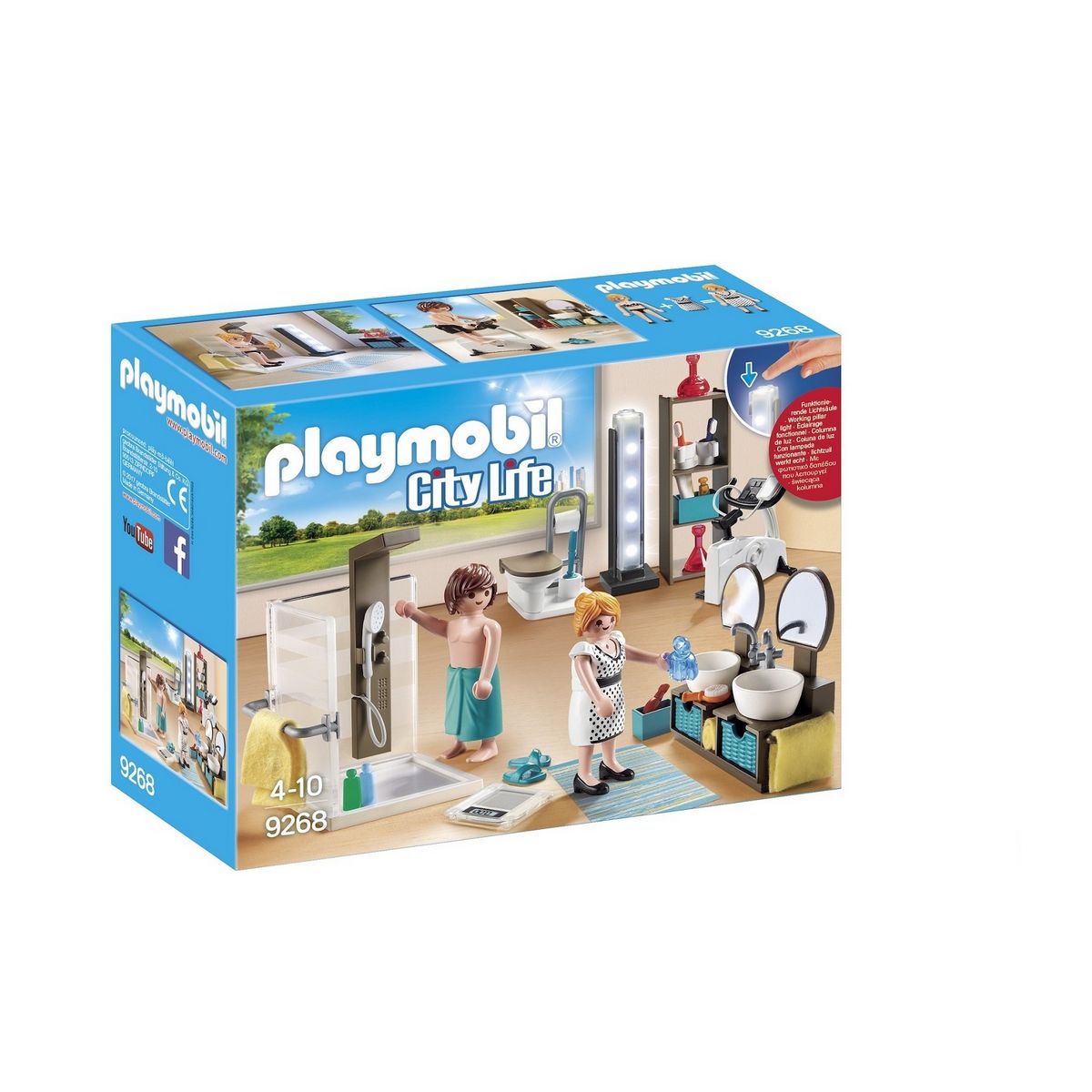 - Contient 2 personnages, 1 douche, 1 lampe, 1 tapis, 1 toilette, 1 meuble de rangement, 2 lavabos et des accessoires.