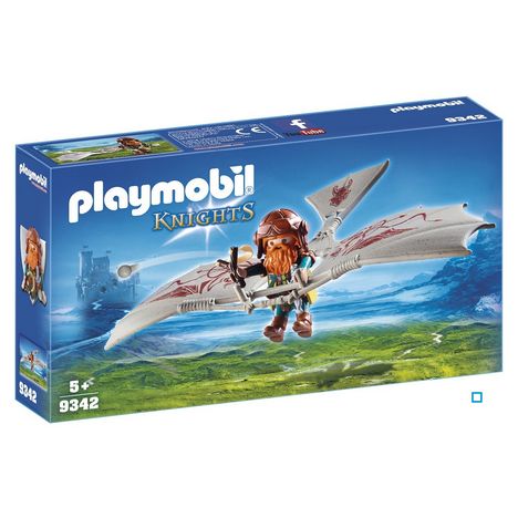 Playmobile te fait découvrir le monde de Knoghts avec le Nain et le deltaplane. Les accessoires fournis te permettront d'inventer des aventures extraordinaires !