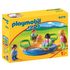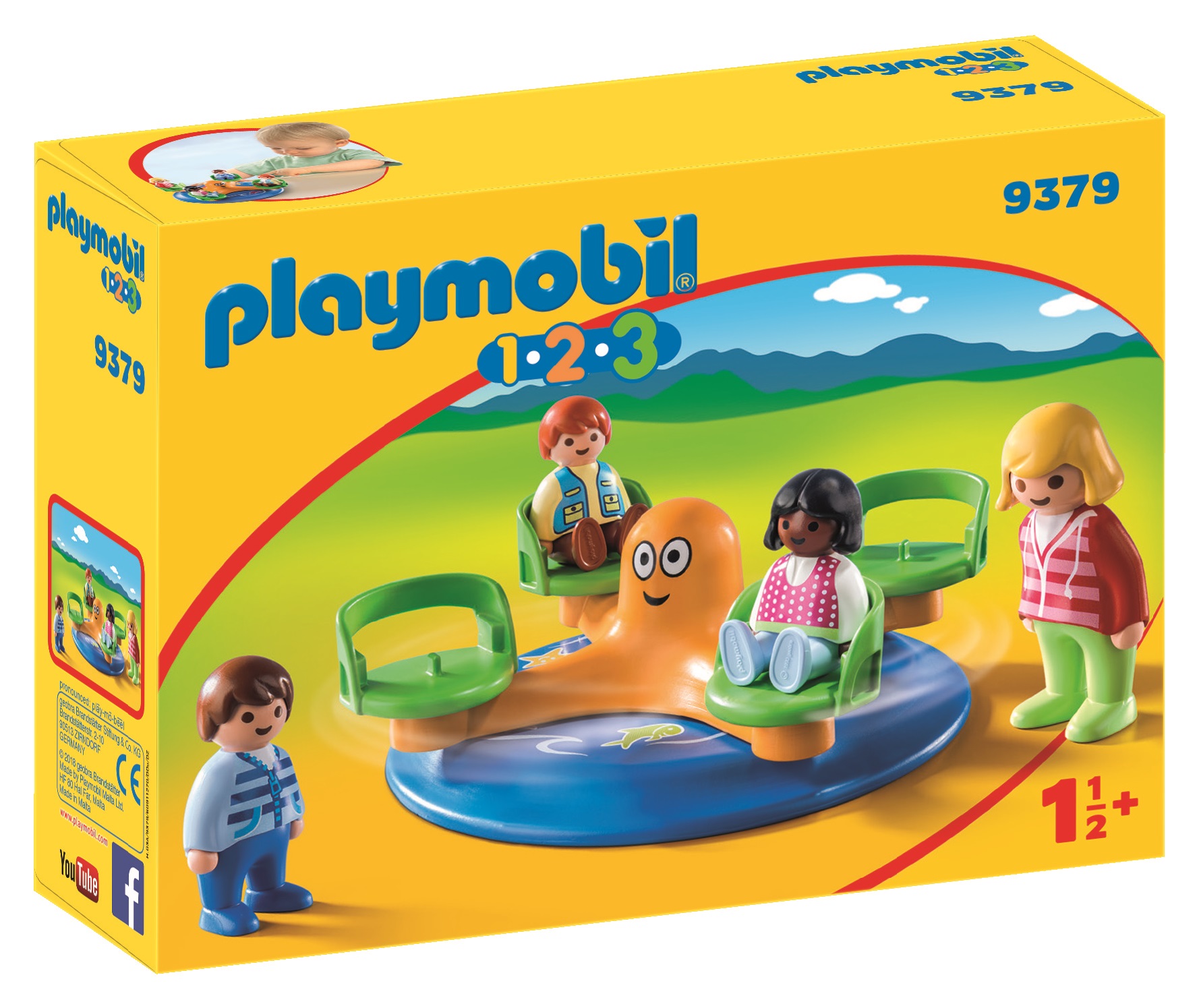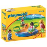 La boîte Playmobil 9379 - Enfants et manège contient un manège de type tourniquet et 4 enfants. Les enfants peuvent jouer sur le carrousel qui tourne : il suffit simplement de tenir le pommeau central et de le faire tourner, peu importe le sens. Le manège et les enfants sont parfaitement adaptés aux petits enfants. Peut être utilisé avec d'autres personnages de la gamme Playmobil 1.2.3.