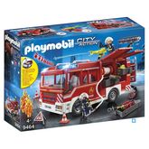 Contient 2 personnages, 1 véhicule à toit amovible, effets sonores et lumineux, équipé d'un treuil et d'un lance projectiles et des accessoires (projectiles, flammes, tuyaux, haches…). Notes : Fourgon d'intervention des pompiers. Points forts : Le véhicule est équipé d'un crochet d'attelage de remorque et peut être équipé du module de radiocommande (réf.6914 - non fournie). Avec toit amovible. La cabine du camion peut accueillir jusqu'à quatre personnages. Des tiroirs pour le stockage du matériel de pompiers et pour l'enrouleur de tuyau se situent dans les coffres à battants. Canon d'extinction fonctionnel. Le module sonore et lumineux (nécessite 2 piles AAA 1,5 V non fournies ) est muni d'un bouton pour choisir entre deux sons de sirène (Europe / USA). Effets lumineux avec temporisation : 2 minutes. Sirène avec temporisation : 12 secondes. Les effets sonores et lumineux peuvent être désactivés à tout moment en appuyant sur le bouton. Avec étiquette "112". Le camion peut être combiné avec la réf. 9468 Pompiers avec matériel d’incendie.