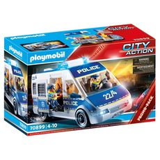 Avec son toit amovible, le véhicule peut accueillir jusqu'à sept personnages. Effets sonores et lumineux activables (nécessite 1 pile 1,5V AAA non fournie). Longueur : 27 cm.