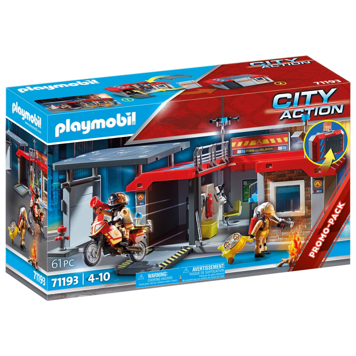 Vivez la vie de pompier à cent à l'heure grâce à cette caserne transportable Playmobil. Aucun feu ne peut résister au déploiement de force des pompiers. Avec leur lance à eau dernier cri et leurs équipements tout terrain, l'incendie est éteint en un rien de temps.