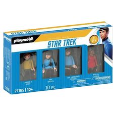 En savoir +Découvrez le jeu de figurines Playmobil - Équipe Star Trek (71155), comprenant le capitaine Kirk, Spock, Uhura et McCoy. Ces figurines en plastique de haute qualité sont fidèles à la série Star Trek et permettent aux enfants de 10 ans et plus d'explorer de nouveaux mondes. Le set inclut des accessoires tels que des phasers et autres outils. Attention, ce produit contient des petites pièces et n'est pas recommandé pour les enfants de moins de 3 ans.