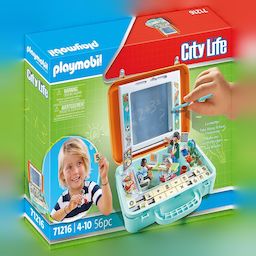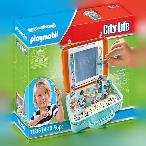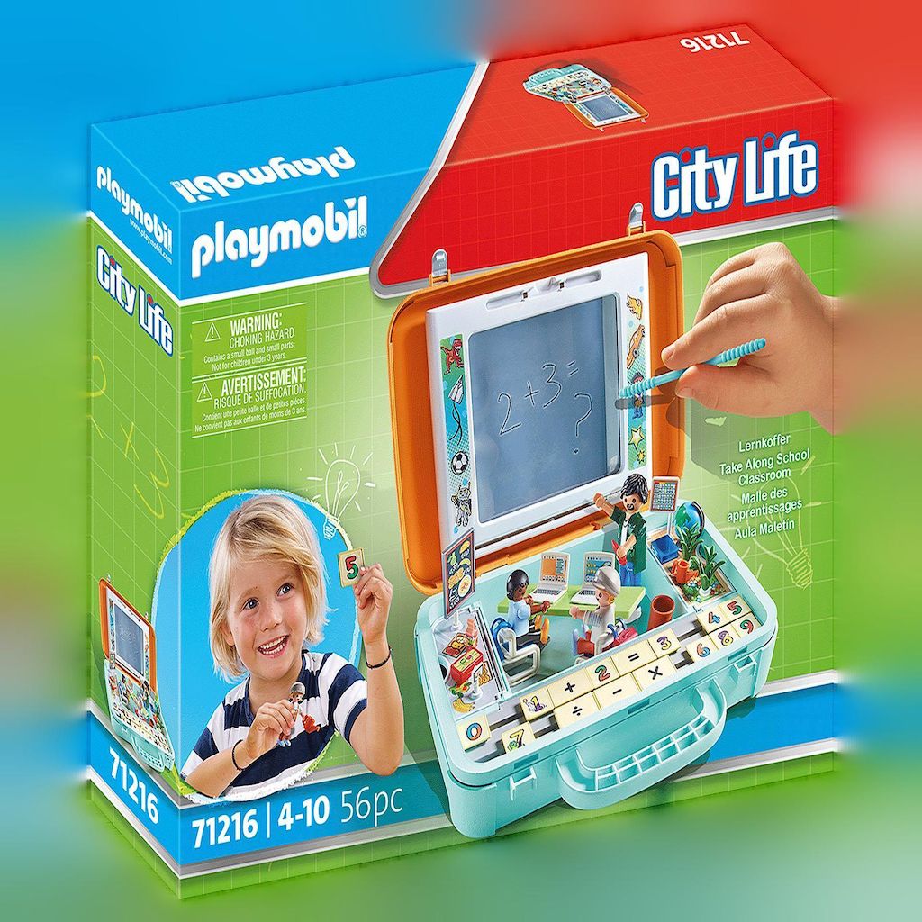 Découvrez le 'Lernkoffer 71216' de Playmobil, un jeu éducatif captivant qui combine apprentissage et amusement. Cette mallette colorée comprenant 56 pièces permet aux enfants d'apprendre les bases des mathématiques dans une ambiance ludique. Elle inclut une grande ardoise réutilisable pour écrire et