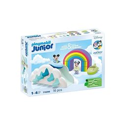 Découvrez la Maison des nuages de Mickey et Minnie, un jouet éducatif interactif Playmobil qui stimule la créativité des jeunes enfants. Cet ensemble multicolore comprend 16 pièces, dont des personnages familiers et divers éléments ludiques favorisant le jeu de rôle. Fabriqué en plastique biosourcé,