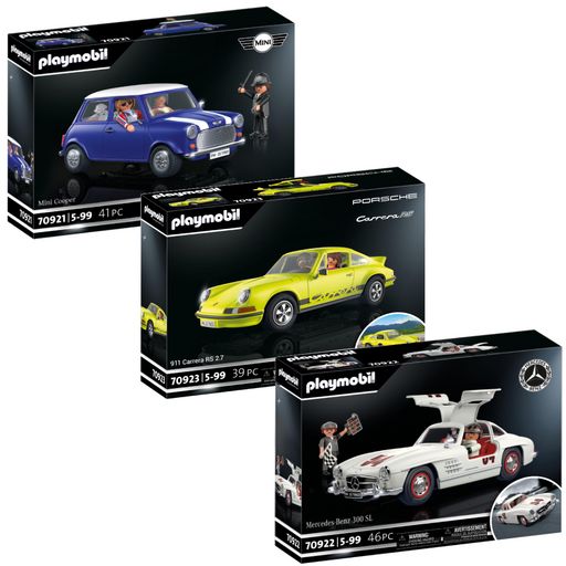 Pack Voitures Mini Cooper + Mercedes Benz 300SL + Porsche 911 Carrera Playmobil