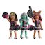Vivez des aventures monstrueusement amusantes avec Clawdeen Wolf , Cleo de Nile et Frankie Stein. Un trio iconique a imaginer et réinventer. Contient 3 figurines et leurs accessoires.