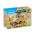 Le véhicule du vétérinaire Jamie Palmer est équipé de panneaux solaires. Le coffret comprend deux personnages, une tente, une lionne, son lionceau et de nombreux accessoires. Plongez au c?ur d'une épopée pleine de découvertes et de rebondissements dans la savane Playmobil. Grâce à leur véhicule tout terrain équipé de panneaux solaires, les missions au c?ur de la savane ne posent pas de problèmes à nos deux explorateurs. Ils peuvent rapidement venir en aide à une lionne blessée et son petit. La plaie disparaît après avoir été doucement frottée ! Après toutes ces émotions, les deux explorateurs peuvent aller se reposer dans la tente sur le toit de leur véhicule. Le coffret comprend deux personnages, un véhicule tout terrain avec une tente, une lionne avec son lionceau et de nombreux autres accessoires.