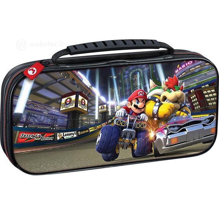 Transportez votre Nintendo Switch en toute tranquillité grâce à cette sacoche de rangement sous licence officielle Nintendo à l'effigie de Mario Kart.