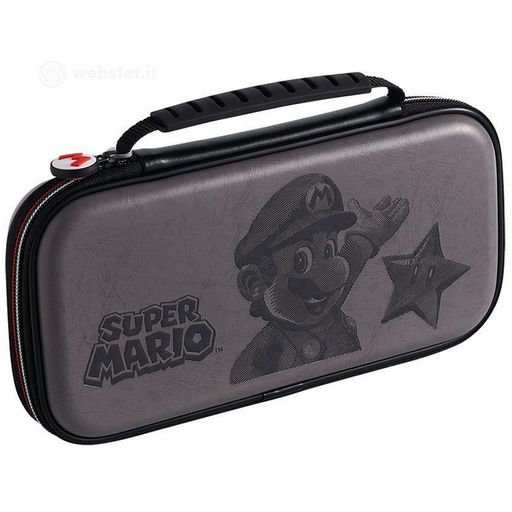 Pochette de transport et de protection officielle Nintendo™ Grise, gravure Mario, pour Nintendo Switch. Matériau rigide pour une protection optimale.