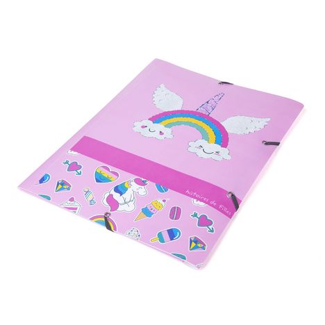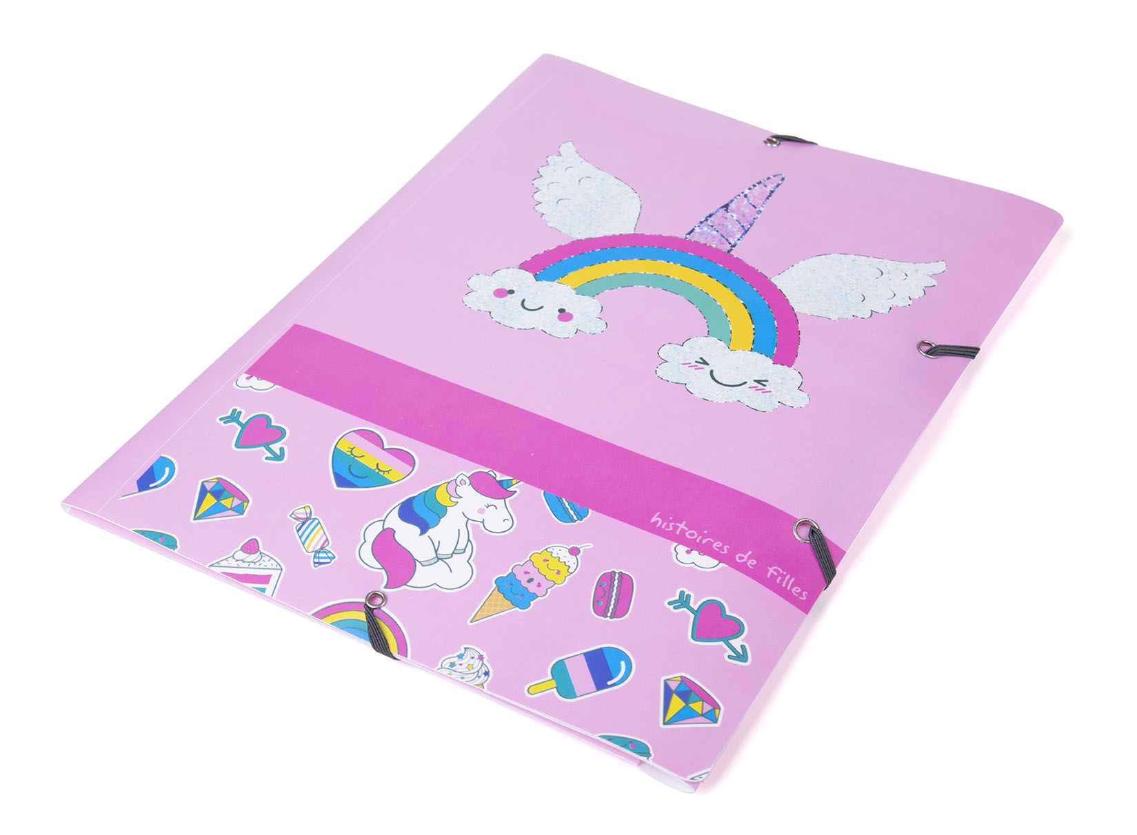 pochettes 3 rabats à élastique 24 x 32 cm multicolore histoires de filles rose licorne