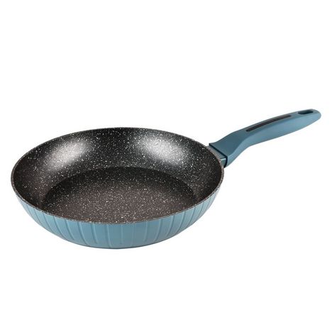Poêle en aluminium forgé 28 cm ultra résistante. Revêtement intérieur antiadhésif effet pierre afin d'éviter l'accroche des aliments. Non compatible au lave-vaisselle. Tous feux dont induction.