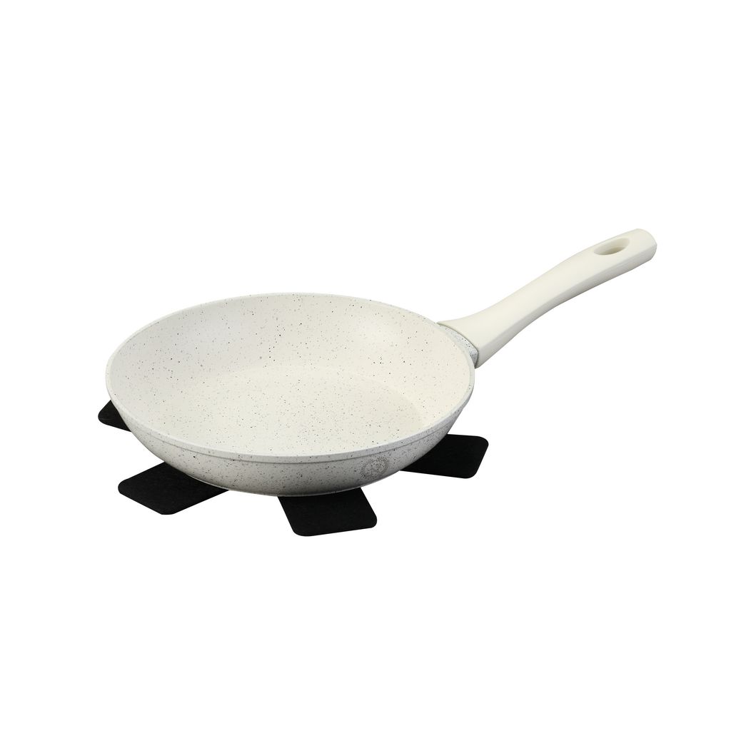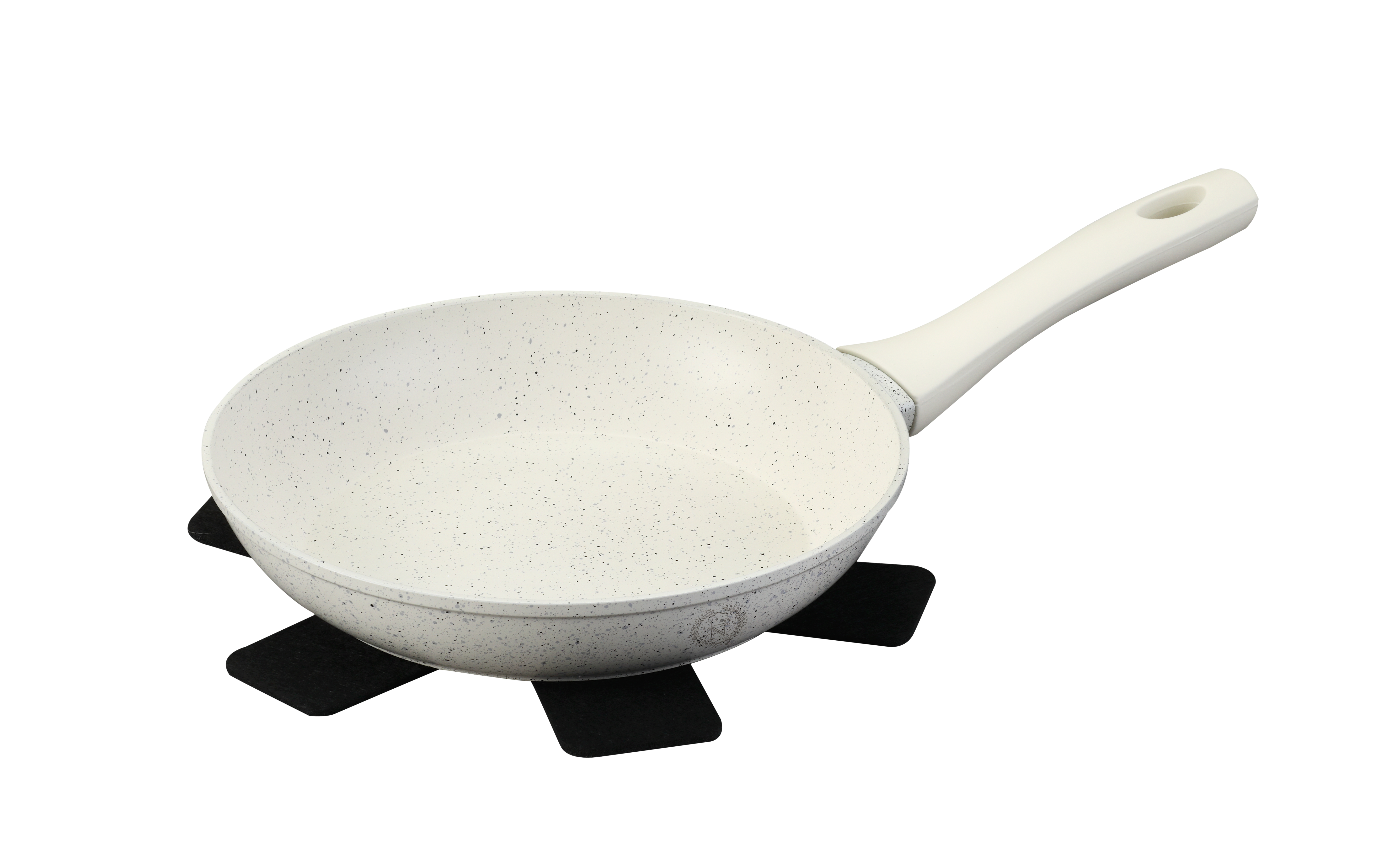 Gamme EFFET PIERRE en aluminium forgé Compatible au lave vaisselle Revêtement intérieur : anti adhérent Une cuisine facile et saine grâce à un revêtement multicouches anti-adhérent permettant de cuisiner avec pas ou très peu de matière grasse. Une gamme de produits maniable et ergonomique. Feutrine de protection incluse Poignée fixe