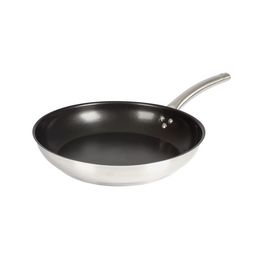 Adoptez cette poêle en inox brossé de 30 cm de diamètre à la forme bombé, intérieur acier revêtu anti adhérent. Son revêtement Whiteford xylan 2 couches et son manche en inox vous garantie solidité et durabilité. Compatible tous feu dont induction.