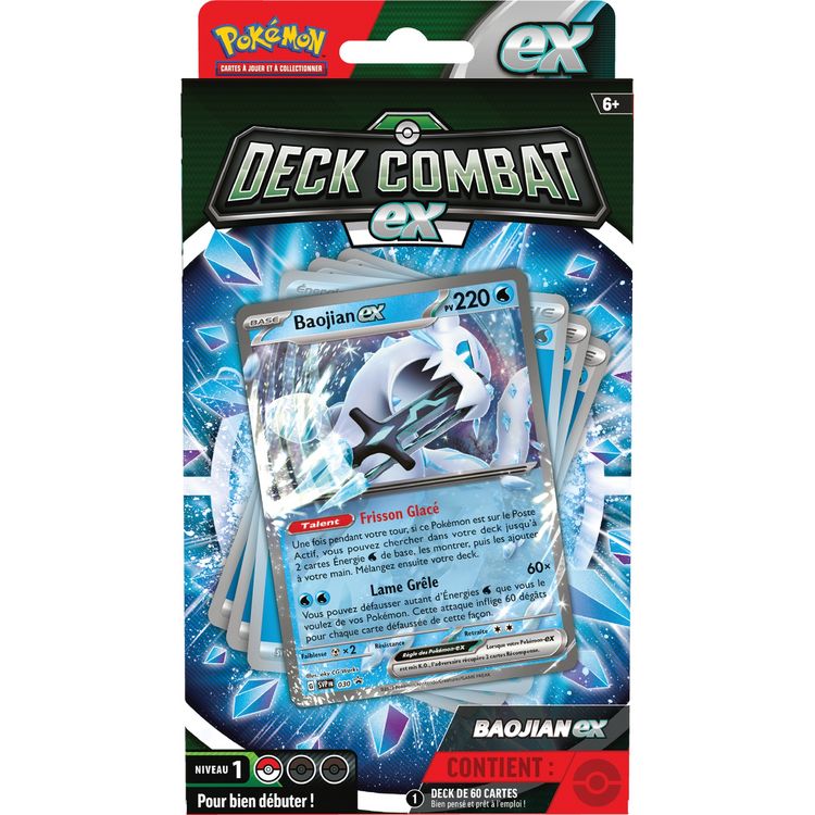 Explorez les fondements du jeu de cartes Pokémon en vous lançant dans l'action avec les decks Combat Baojian-EX ou Forgelina ! Ces decks préconstruits simplifient l'apprentissage du jeu comme jamais auparavant. Il vous suffit de les ouvrir pour être prêt à vous lancer dans des combats passionnants !