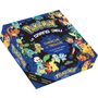 "Une boîte de jeux pour défier ses amis avec un plateau de jeu, des pions, un sablier, 200 cartes et 20 scènes de cherche-et-trouve.