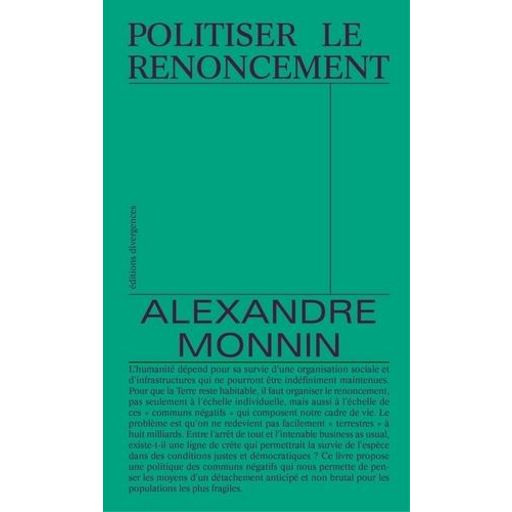 L'humanité dépend pour sa survie d'une organisation sociale et d'infrastructures qui ne pourront être indéfiniment maintenues. Pour que la Terre reste habitable, il faut organiser le renoncement, pas seulement à l'échelle individuelle, mais aussi à l'échelle de ces communs négatifs qui composent notre cadre de vie. Le problème est qu'on ne redevient pas facilement terrestres à huit milliards. Entre l'arrêt de tout et l'intenable business as usual, existe-t-il une ligne de crête qui permettrait la survie de l'espèce dans des conditions justes et démocratiques ? Ce livre propose une politique des communs négatifs qui nous permette de penser les moyens d'un détachement anticipé et non brutal pour les populations les plus fragiles.