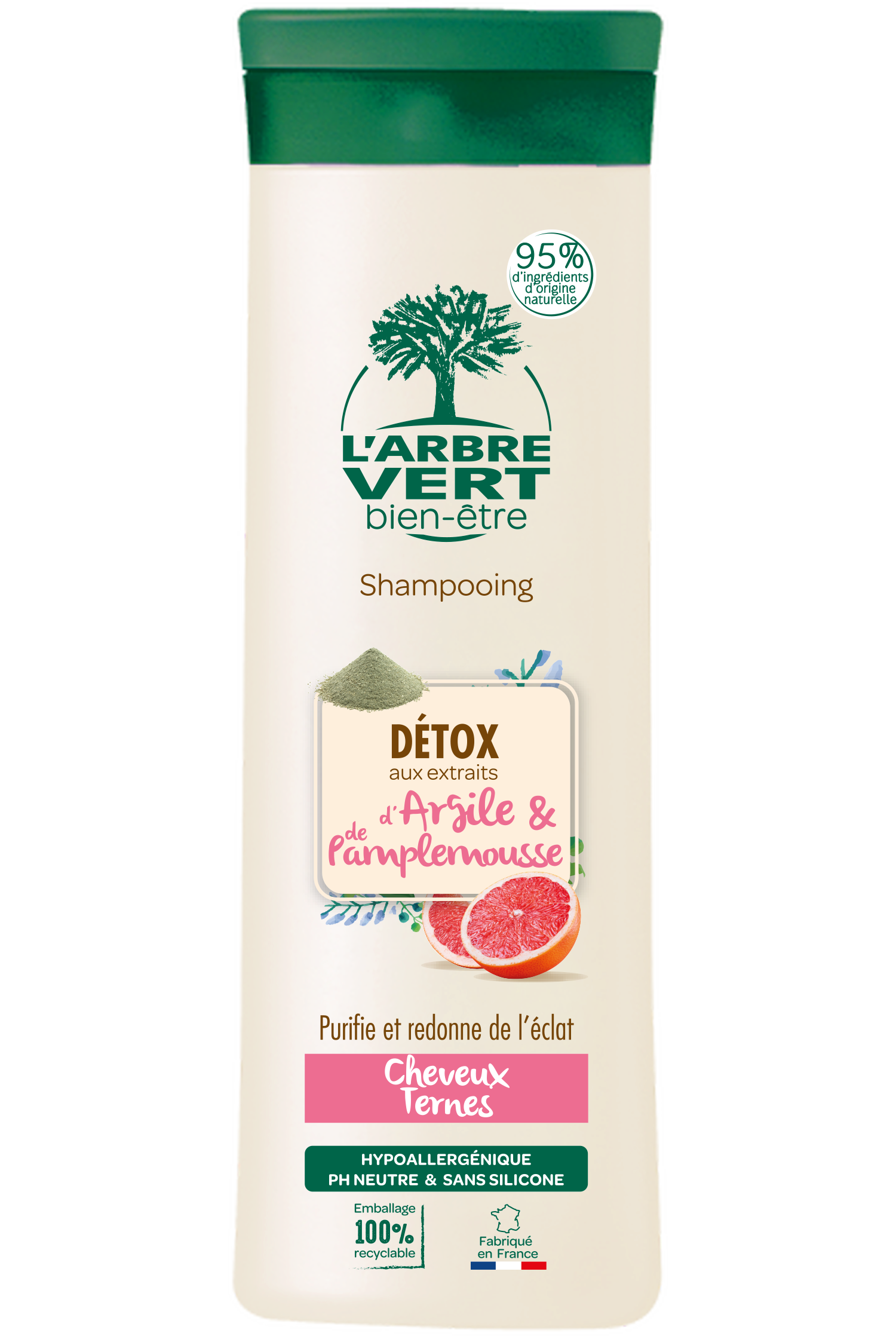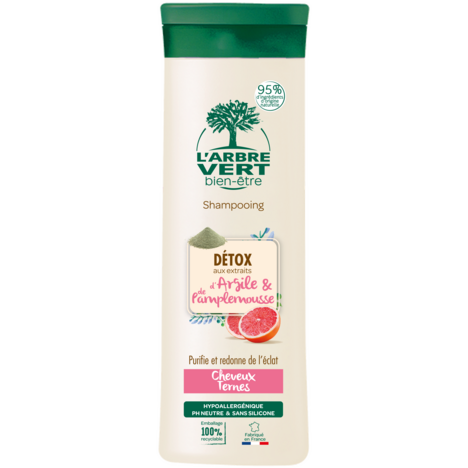 L'Arbre Vert Bien-être Shampooing Détox aux extrait d'Argile et de Pamplemousse Cheveux Ternes - Hypoallergénique - 95% d'ingrédients d'origine naturelle - 250mL