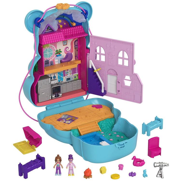 Ce grand coffret Sac à Main Ourson a une forme d’ours à ventre transparent rempli de paillettes. Ouvrez le coffret pour révéler un superbe espace de jeu sur le thème de la soirée pyjama agrémenté de 16 accessoires (certains dotés du système de fixation Pop & Swap) et de 2 mini-figurines.