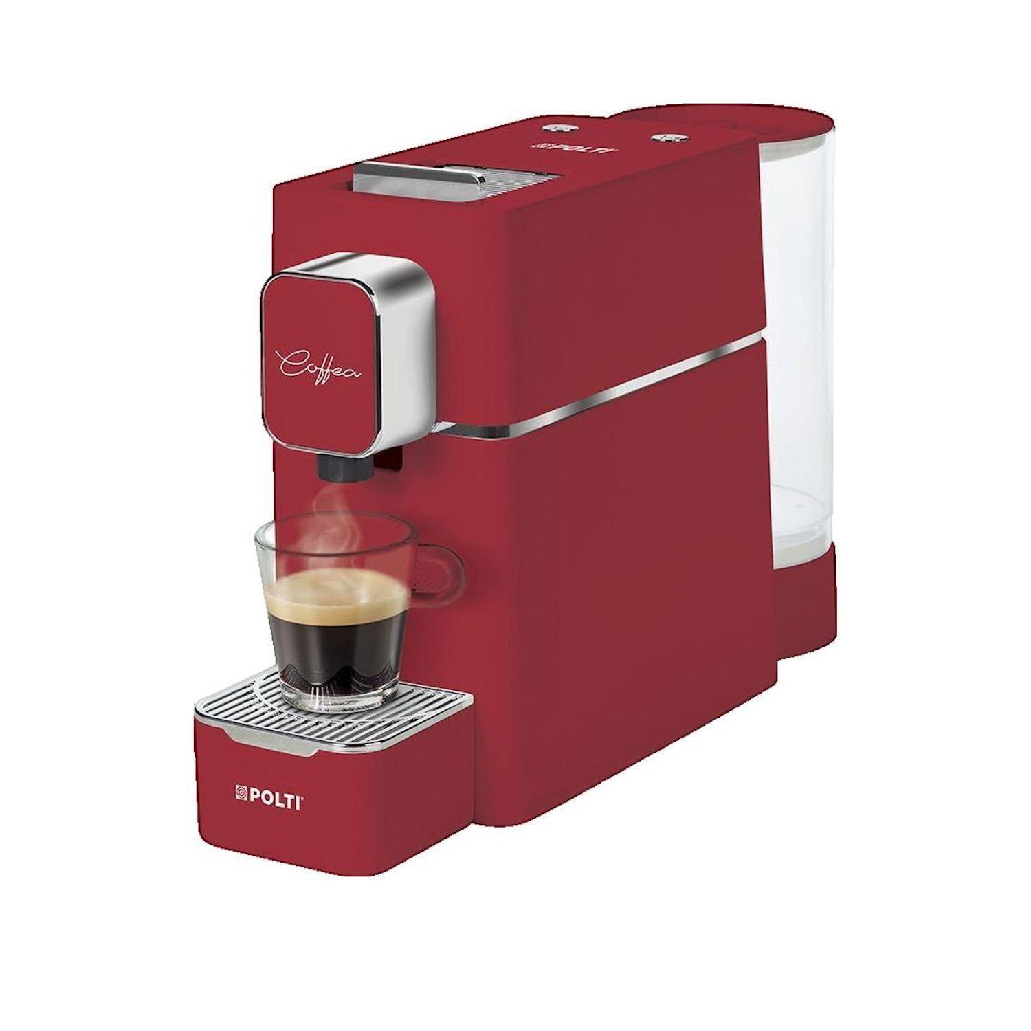 Découvrez la cafetière automatique Polti de couleur rouge, équipée d'une capacité de 0,85 litre et d'une puissance de 1400 watts. Ce modèle moderne à capsules prépare rapidement un café frais et délicieux, idéal pour votre routine quotidienne. Son design élégant et contemporain s'intègre parfaitemen