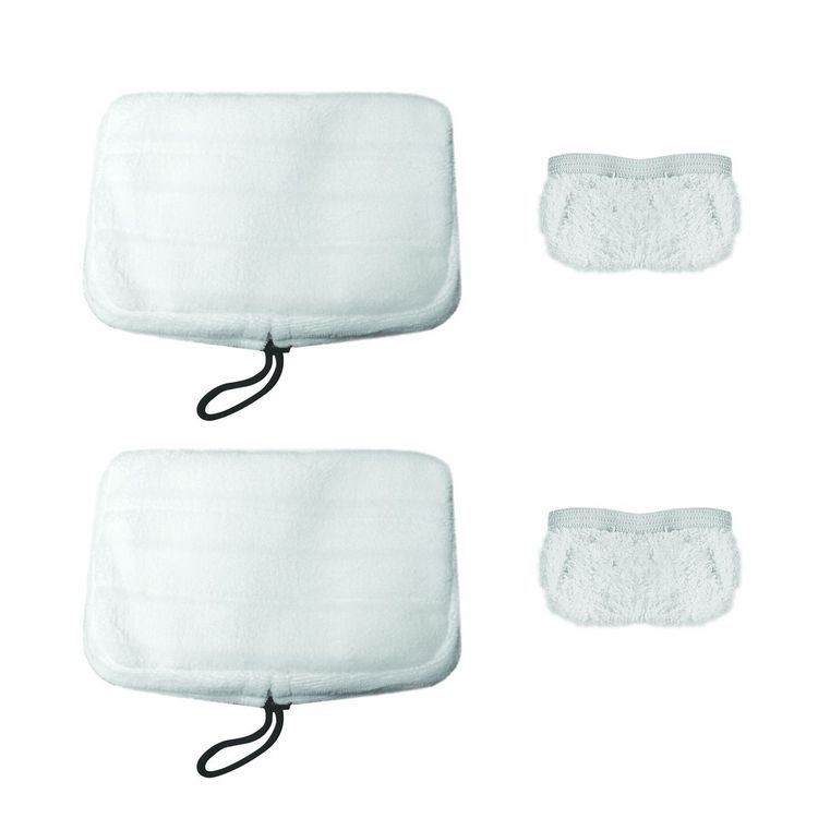 2 serpillières microfibre pour sols, 2 bonnettes coton pour tissus d'ameublement