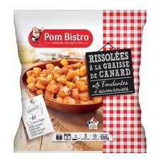 Fondantes et savoureuses, nos rissolées sont cuites dans de la graisse de canard et relevées d'une pointe d'ail pour parfumer le bon goût de la pomme de terre.