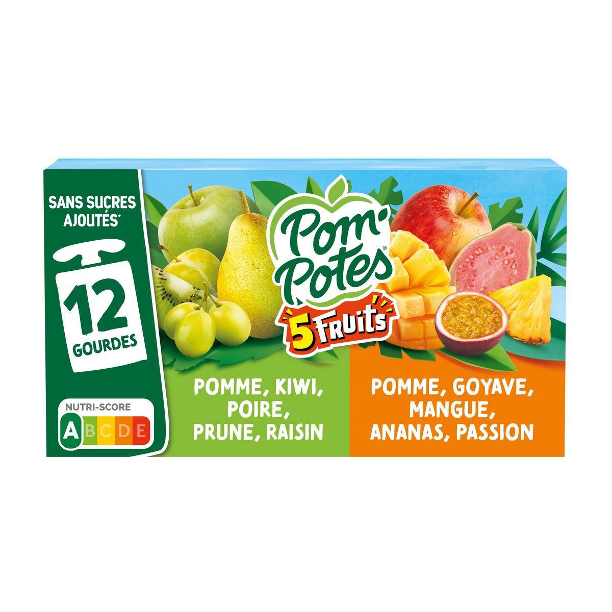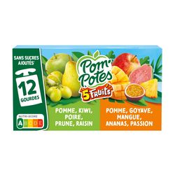 1,2,3,4 ... 5 fruits pour faire le plein de saveurs ! Découvrez la gamme Pom'Potes® 5 Fruits, des gourdes au goût intense à emporter partout ! Pom'Potes® 5 Fruits, c'est aussi : • Des recettes sans sucres ajoutés* et sans arôme artificiel • Une gourde Pom'Potes® correspond à 1 des 5 portions de fruits et légumes recommandées quotidiennement * Contient des sucres naturellement présents