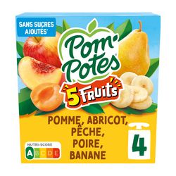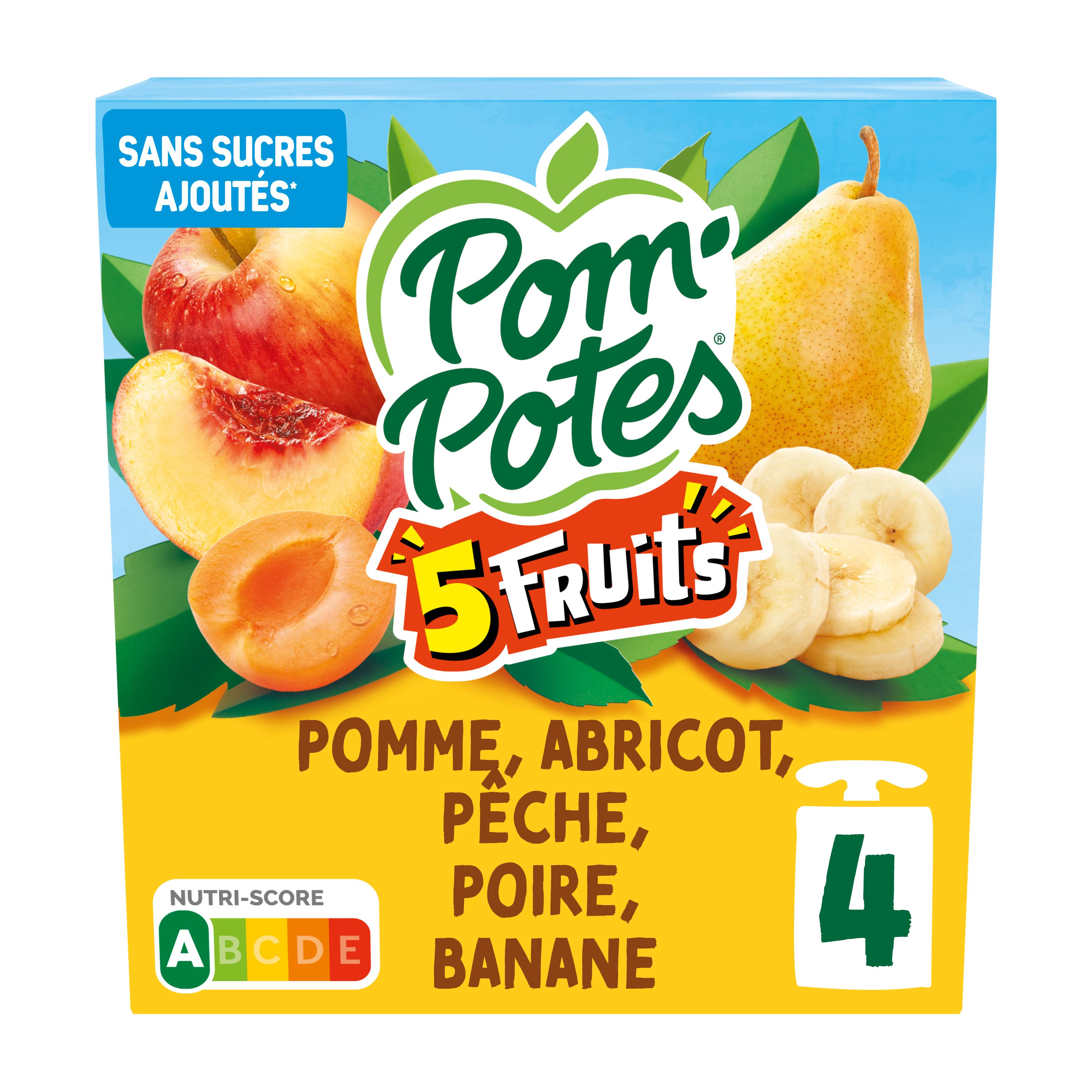 1,2,3,4 ... 5 fruits pour faire le plein de saveurs ! Découvrez la gamme Pom'Potes® 5 Fruits, des gourdes au goût intense à emporter partout ! Pom'Potes® 5 Fruits, c'est aussi : • Des recettes sans sucres ajoutés* et sans arôme artificiel • Une gourde Pom'Potes® correspond à 1 des 5 portions de fruits et légumes recommandées quotidiennement * Contient des sucres naturellement présents