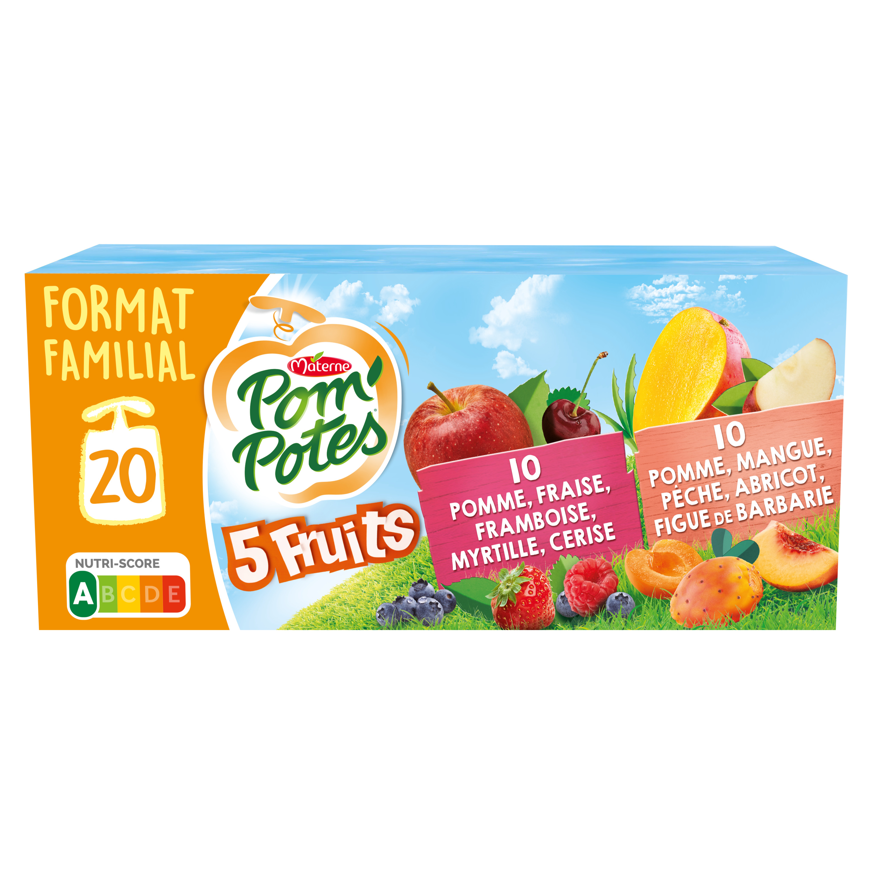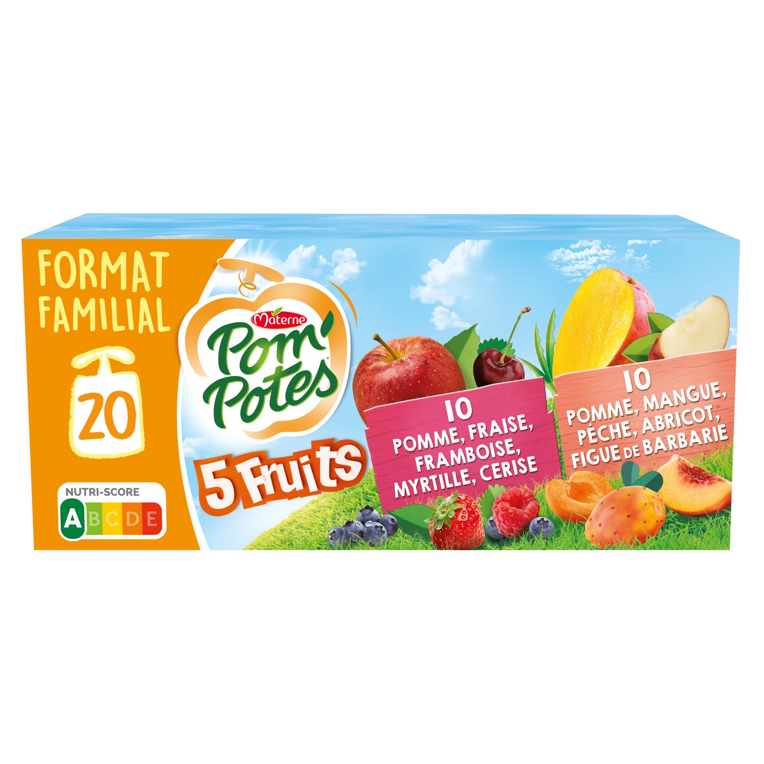 Gourdes 5 fruits pomme fraise framboise myrtille cerise et pomme mangue pèche abricot figue de Barbare