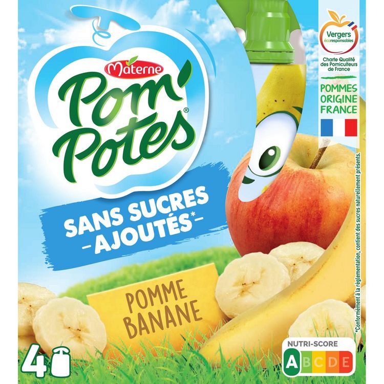 Purée de pomme banane sans sucres ajoutés (conformément à la réglementation, contient des sucres naturellement présents).