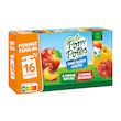 Pomme : pomme 99,7% (purée et purée concentrée), arôme naturel de pomme, jus de citron concentré (si nécessaire pour réguler l'acidité), antioxydant : acide ascorbique. Pomme brugnon : pomme 69,8%, brugnon 30%, arôme naturel, jus de citron concentré (si nécessaire pour réguler l'acidité), antioxydant : acide ascorbique.