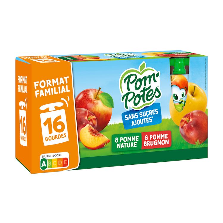 POM'POTES® Sans Sucres Ajoutés*, c'est le goûter à emporter partout, élaboré à partir de pommes origine France issues de Vergers écoresponsables. Chez POM'POTES®, on s'engage pour le bien-être et le plaisir des petits et des grands dégourdis ! Chacune de nos gourdes est sans sucres ajoutés* et correspond à 1 des 5 portions de fruits et légumes recommandées quotidiennement. * Contient des sucres naturellement présents.