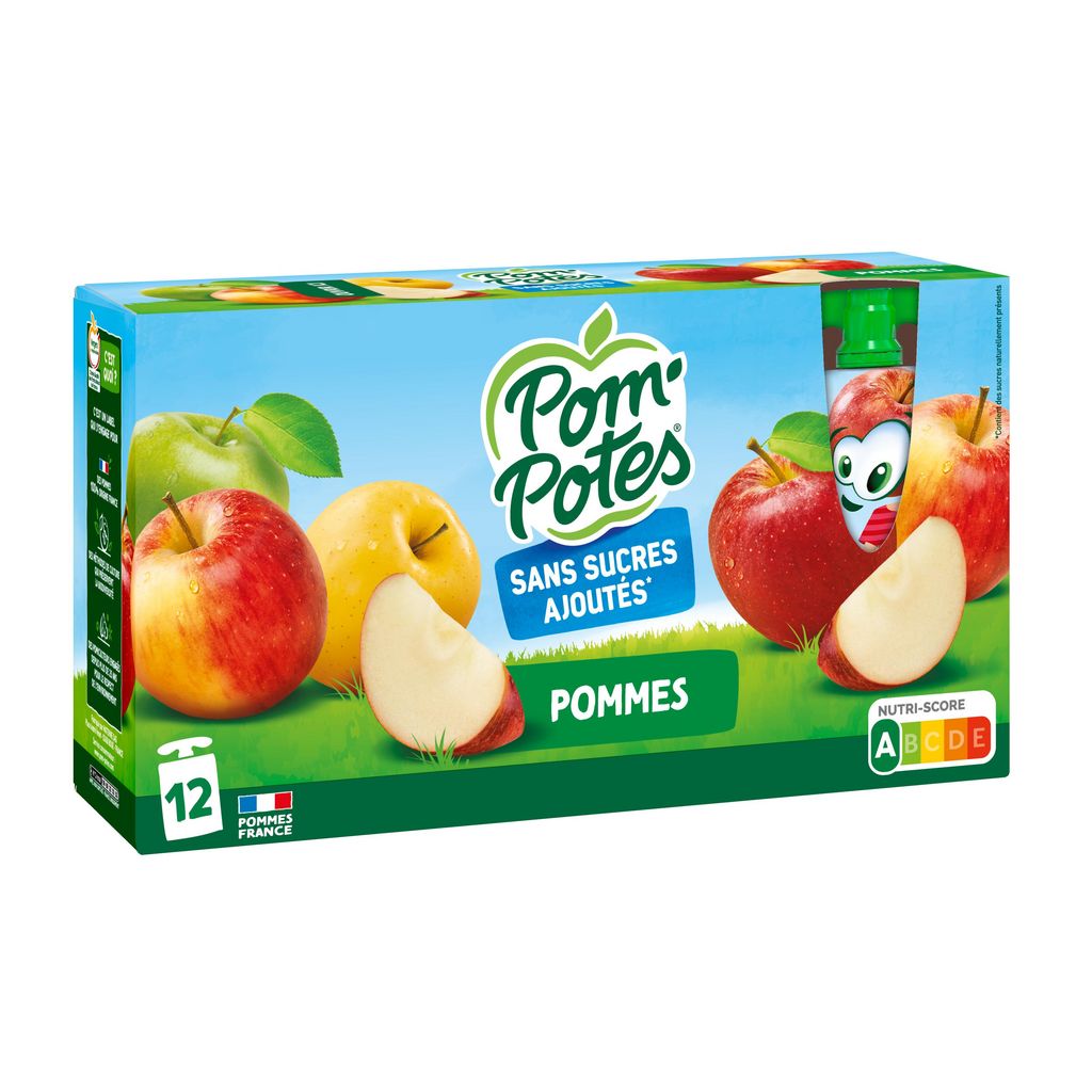 POM'POTES® Sans Sucres Ajoutés*, c'est le goûter à emporter partout, élaboré à partir de pommes origine France issues de Vergers écoresponsables. Chez POM'POTES®, on s'engage pour le bien-être et le plaisir des petits et des grands dégourdis ! Chacune de nos gourdes est sans sucres ajoutés* et correspond à 1 des 5 portions de fruits et légumes recommandées quotidiennement. * Contient des sucres naturellement présents.