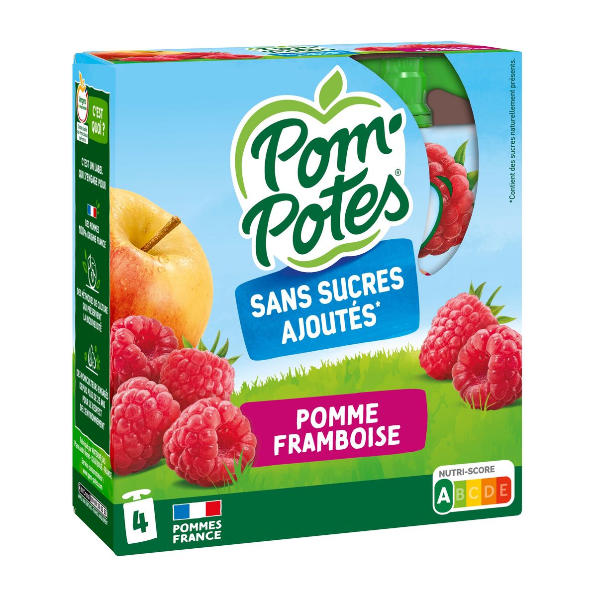 POM'POTES® Sans Sucres Ajoutés*, c'est le goûter à emporter partout, élaboré à partir de pommes origine France issues de Vergers écoresponsables. Chez POM'POTES®, on s'engage pour le bien-être et le plaisir des petits et des grands dégourdis ! Chacune de nos gourdes est sans sucres ajoutés* et correspond à 1 des 5 portions de fruits et légumes recommandées quotidiennement. * Contient des sucres naturellement présents.