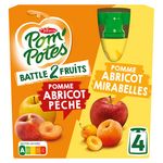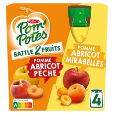 Découvrez Pom'Potes® Battle 2 fruits, des duos de recettes originales de 3 fruits qui vont vous en mettre plein la vue et les papilles. Partagez et départagez les avec vos proches, et pour ça rien de mieux de les goûter ! POM'POTES® Battle 2 Fruits, c'est aussi : • Des recettes sans sucres ajoutés*, sans arôme artificiel et sans colorant** • Une gourde Pom'Potes® correspond à 1 des 5 portions de fruits et légumes recommandées quotidiennement * Contient des sucres naturellement présents ** Conformément à la règlementation