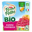 Pom'Potes® Bio, des recettes Bio et savoureuses ! Faites plaisir à vos enfants avec Pom'Potes® Bio, le goûter fruité et rigolo à emporter ! • Pom'Potes® Bio, ce sont des recettes savoureuses élaborées avec de bons fruits biologiques. Cocorico, nos pommes sont 100% Origine France ! • Pom'Potes® Bio s'engage pour un goûter sain : nos recettes sont sans sucres ajoutés (conformément à la réglementation, elles contiennent uniquement les sucres naturellement présents dans les fruits), Nutriscore A.